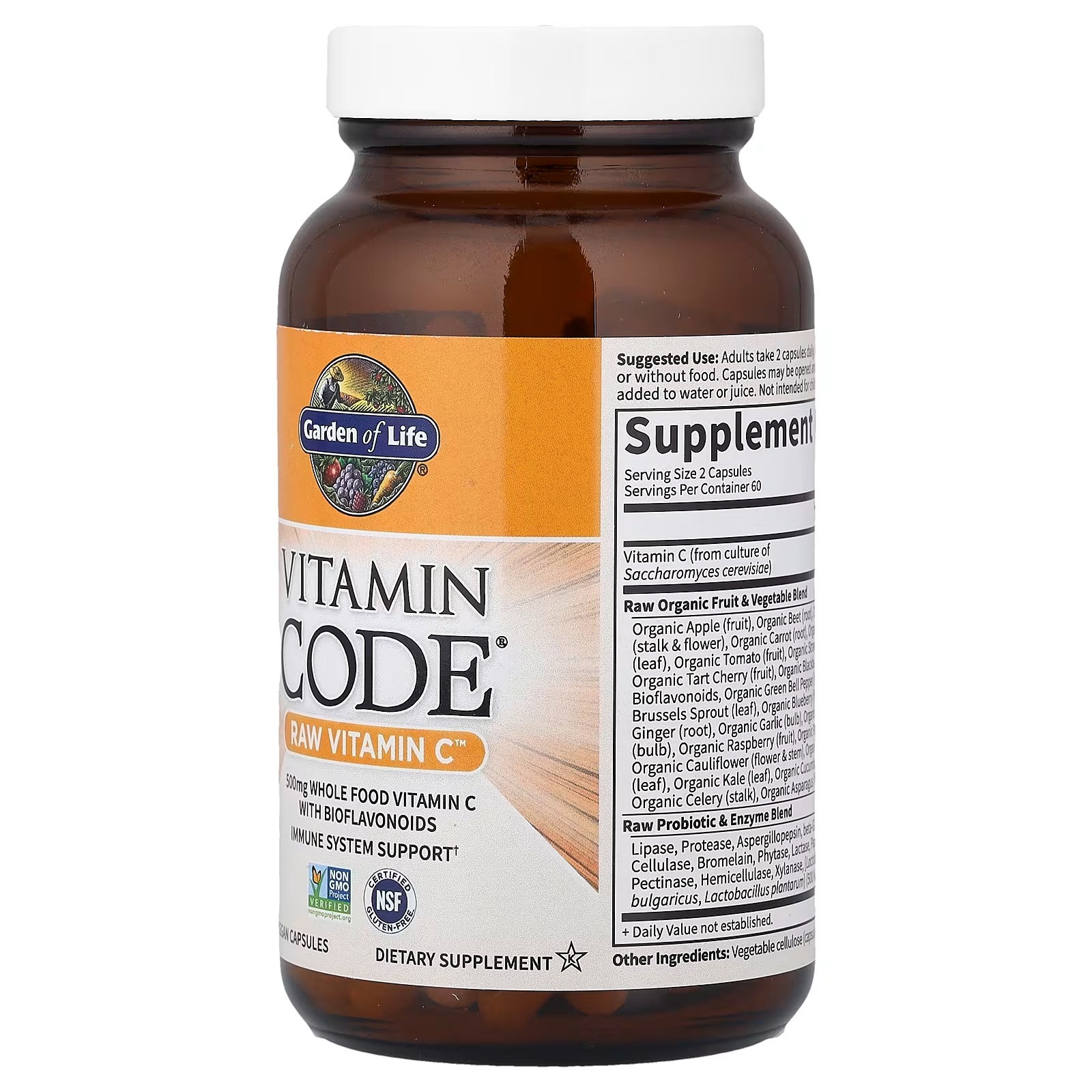 Vitamin Code® RAW Vitamin C™ is whole food nutrition, specifically formulated to provide 500 mg of Vitamin C, along with naturally occurring bioflavonoids.